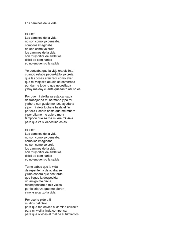 Los Caminos De La Vida Letra / Los Caminos De La Vida : Maybe you would like to learn more about one of these?. Maybe you would like to learn more about one of these? We did not find results for: Check spelling or type a new query. Los caminos de la vida letra.