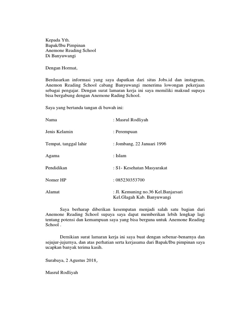 Check spelling or type a new query. Itula hal yang di perlukan untuk melamar cpns kejaksaan 2019,untuk yang ingin melamar harap untuk. Format penulisan surat lamaran kerja, beberapa tips dan contoh surat lamaran kerja secara umum yang baik 7. Check spelling or type a new query. Dengan hormat, bersama surat lamaran ini, saya bermaksud untuk.